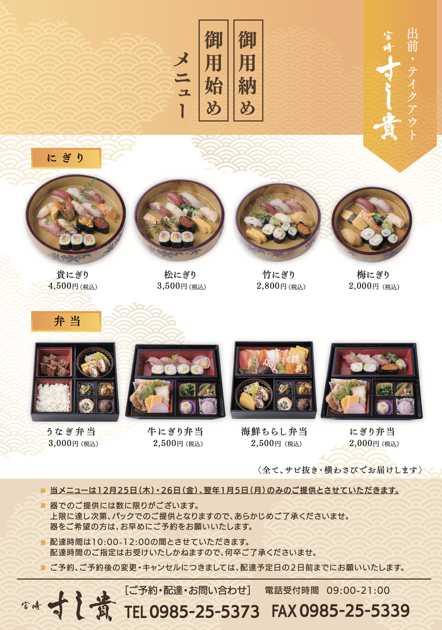 2026年も職場の皆様と素敵な一年になりますように、すし貴が真心込めてご準備いたします。